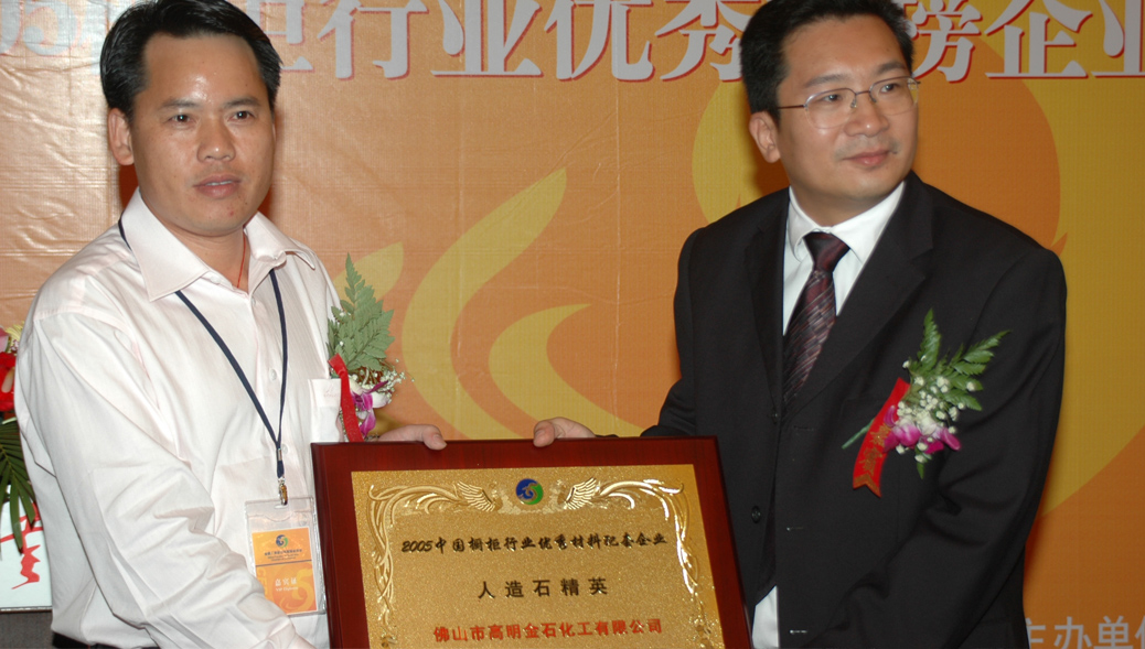 金石榮獲——中國櫥柜行業(yè)優(yōu)秀材料配套企業(yè)人造石精英大獎(jiǎng) 2005-11-10 點(diǎn)擊: